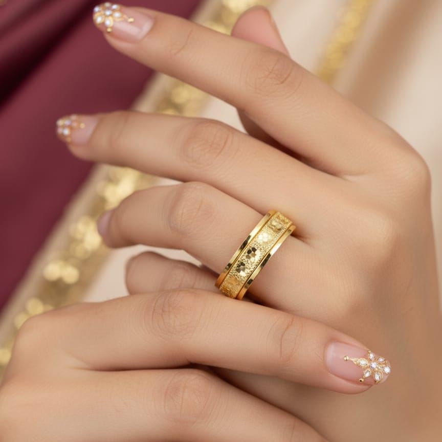 • This pure 916 gold ring features a smooth, polished finish that radiates understated elegance. Crafted without any gemstones or patterns, it highlights the natural brilliance of gold itself. The darker areas seen are simply shadows, enhancing the ring’s warm and refined shine.