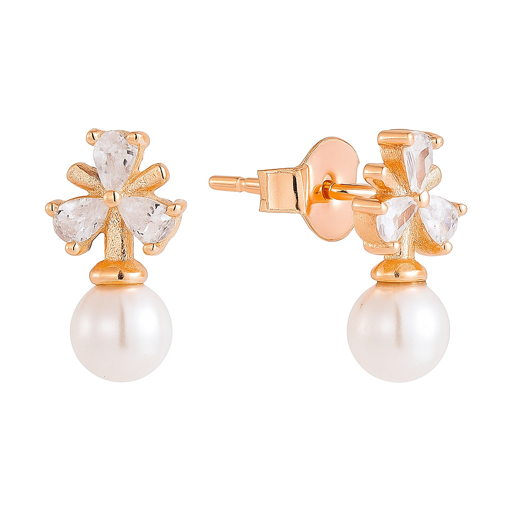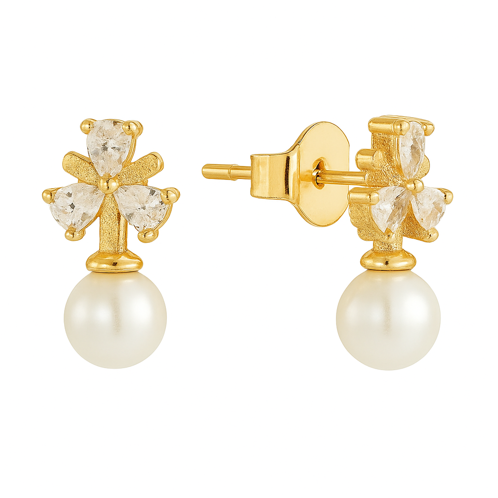 Size & Product Weight:Dainty Pearl & CZ Floral Stud Earrings (1.50gr)