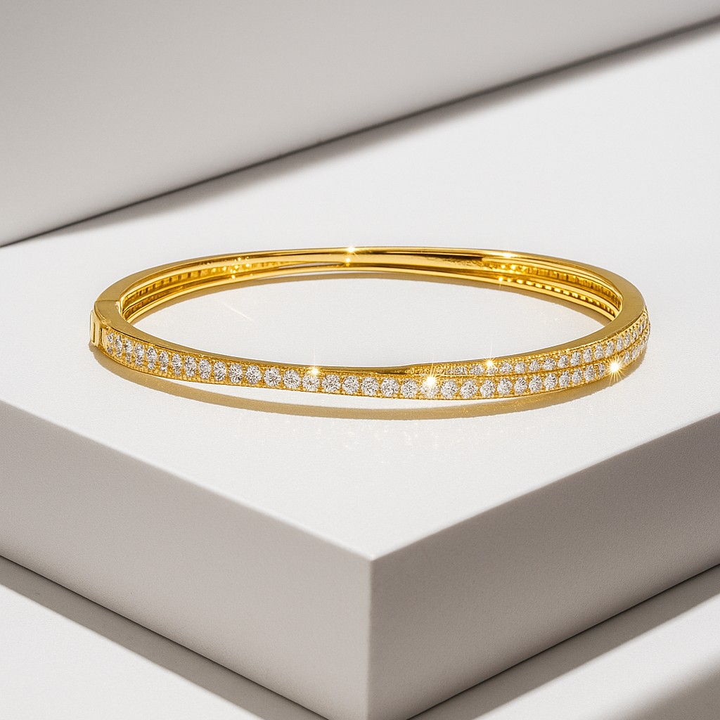 A sleek diamond-lined circle of light — the ultimate timeless essential. This bracelet radiates understated brilliance, making it the ideal stacking piece or a statement of singular elegance.