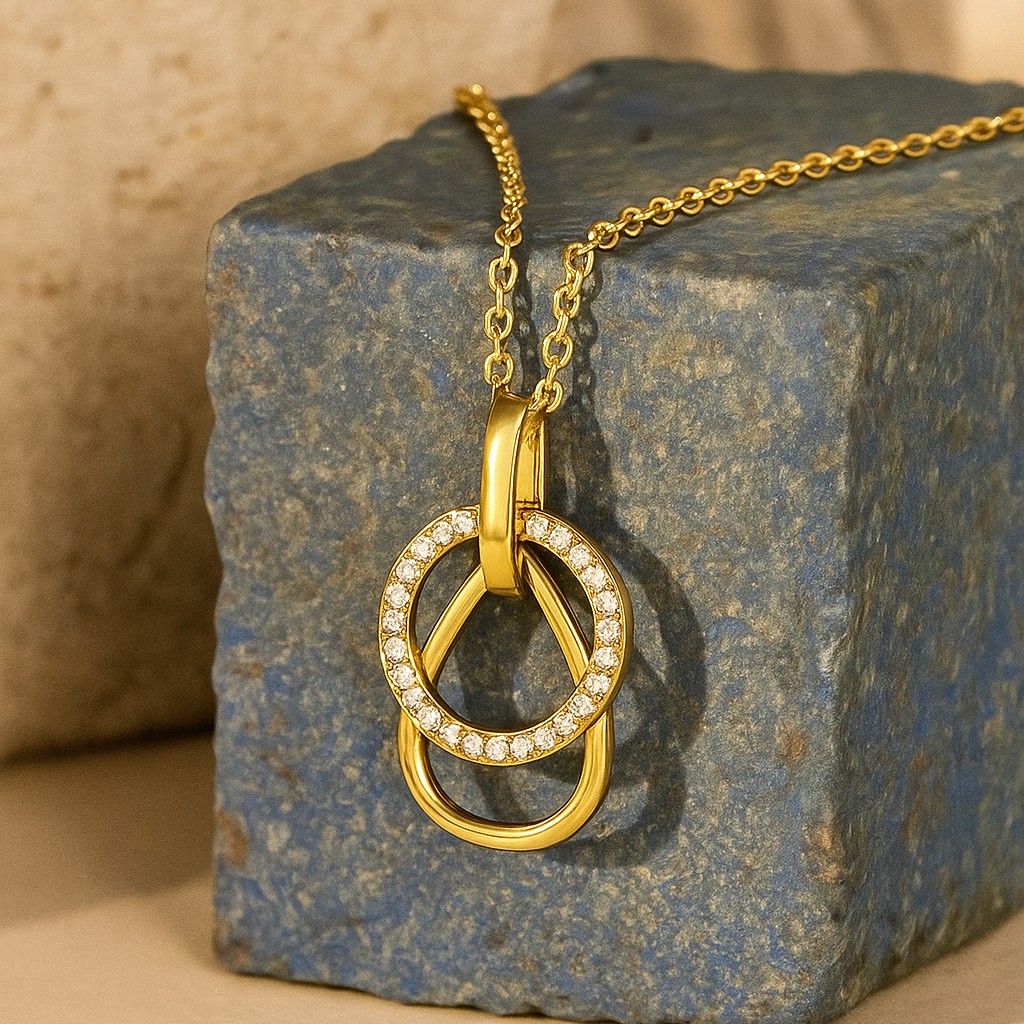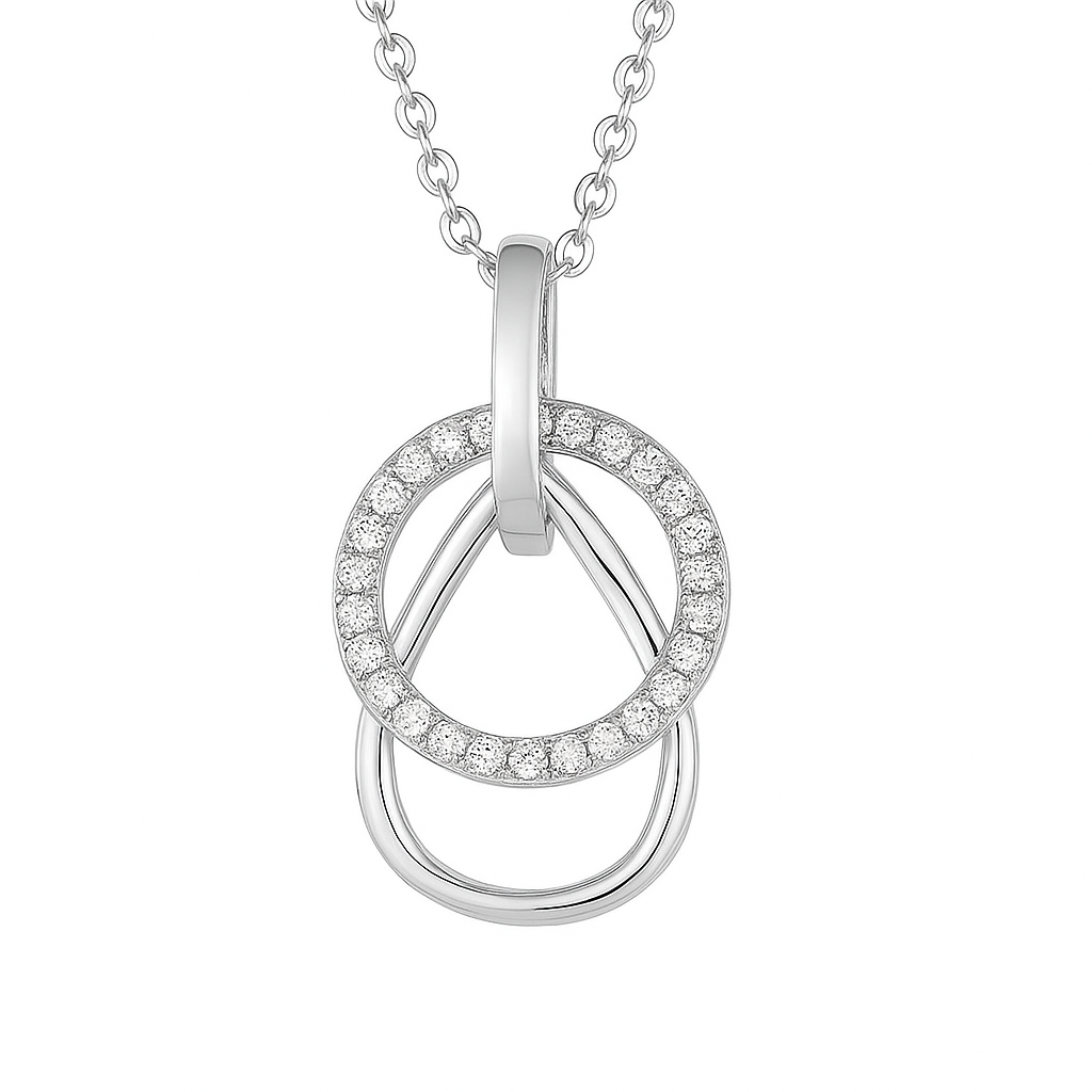 Two diamond-kissed loops interlace in radiant unity, celebrating the beauty of connection and the strength of togetherness.