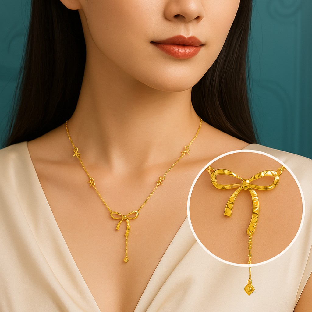A graceful 916 gold necklace adorned with charming ribbon motifs — a timeless symbol of elegance and femininity.