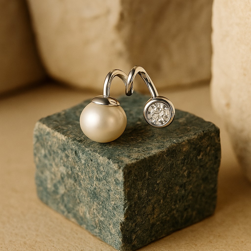 Minimalist yet striking, this pendant features a luminous pearl paired with a radiant VS1 diamond along a fluid silver curve. A harmony of purity and brilliance — understated luxury for modern elegance