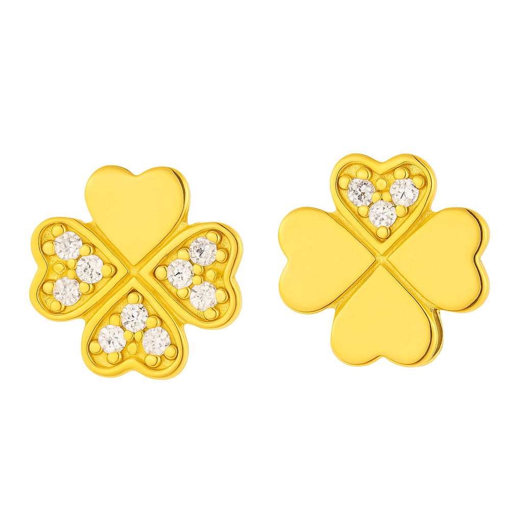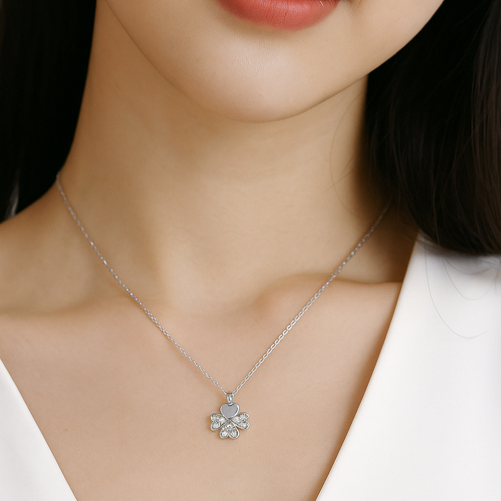 A versatile talisman of love and fortune, this reversible pendant features a clover design with diamond-studded hearts on one side and polished simplicity on the other. A piece of elegance that adapts to every moment.