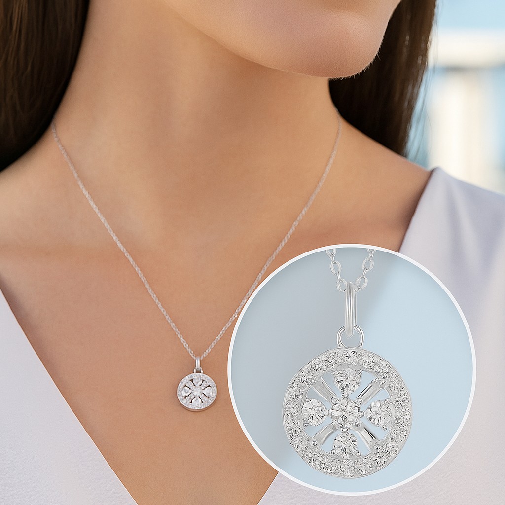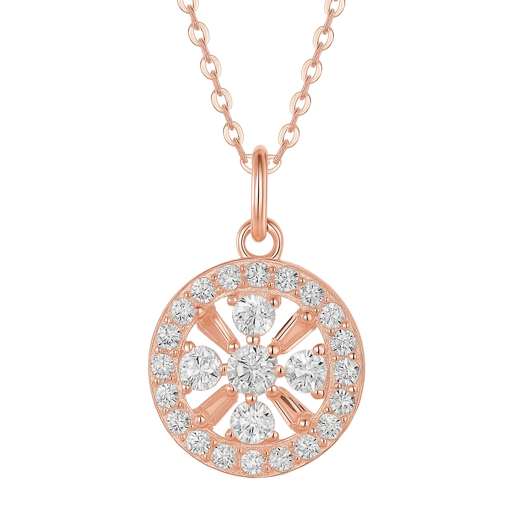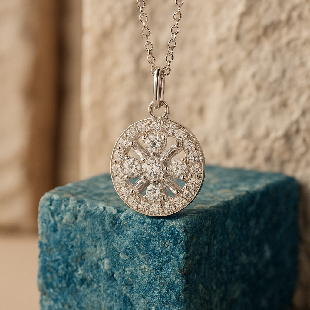 A floral-inspired masterpiece, this pendant dazzles with concentric layers of VS1 diamonds arranged in a radiant burst. Each petal glimmers with fire, capturing the eternal beauty of blossoms frozen in a moment of brilliance.