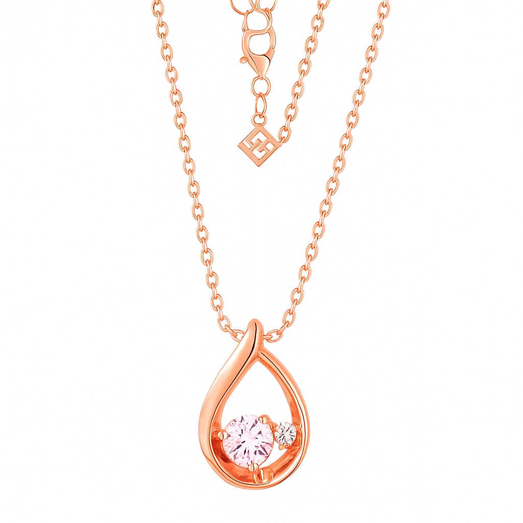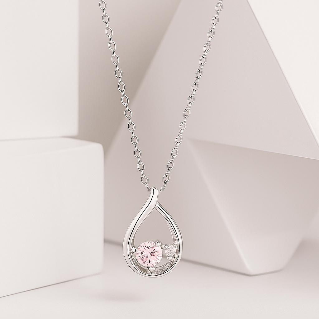 A softly curved teardrop motif embraces a luminous central gem, shimmering like morning dew kissed by sunlight. Its fluid shape speaks of movement and life, making it a poetic expression of refined femininity.