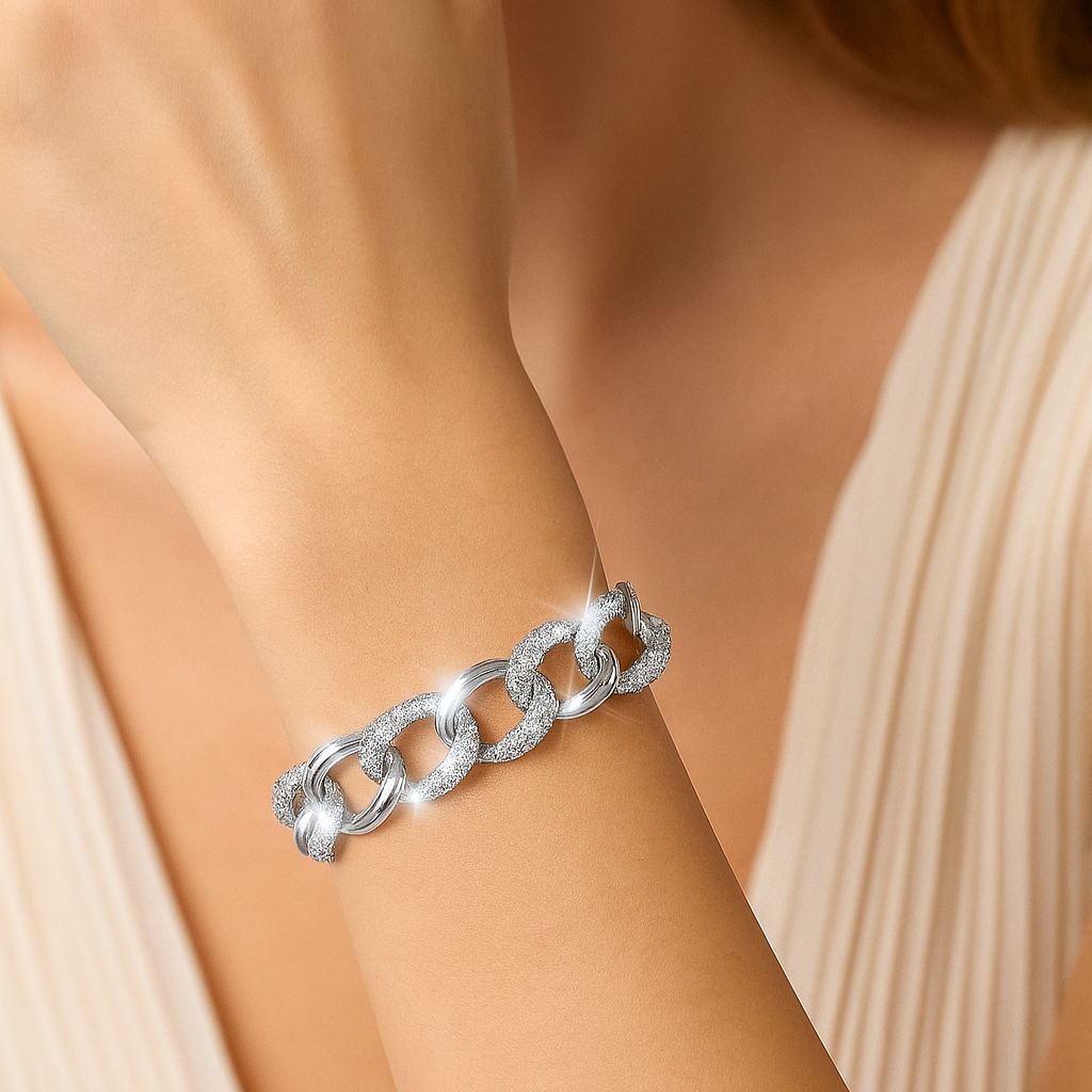 Classic design, reimagined for the modern connoisseur. This bracelet features bold, interlocking links that exude confidence and resilience, their polished surfaces reflecting a dance of light with every movement. More than adornment, it represents unbreakable bonds — a tribute to enduring connections, loyalty, and strength. Perfect for daily elegance or commanding presence on special occasions.